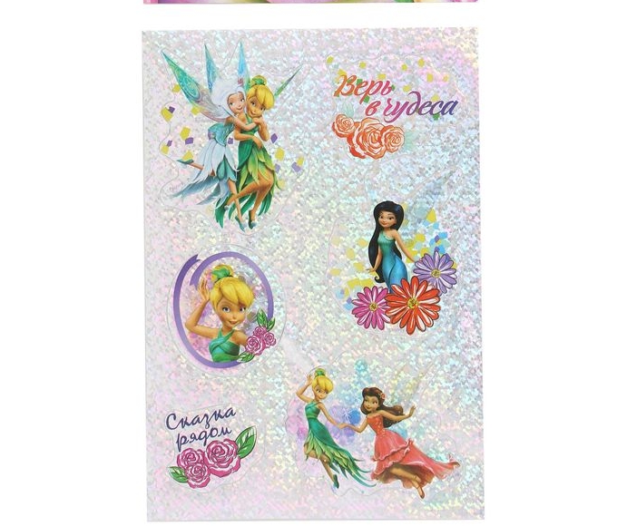 Наклейки декоративные голография "Верь в чудеса", Феи — прекрасный выбор для тех, кто хочет обрадовать ребёнка. Украсьте вещи малыша, тетради, подарки друзьям, интерьер комнаты и даже обои. Наклейки блестят и переливаются, будто они — волшебные! Превратите процесс декорирования в игру, которая надолго запомнится крохе. Популярные герои Disney преобразят каждый предмет.