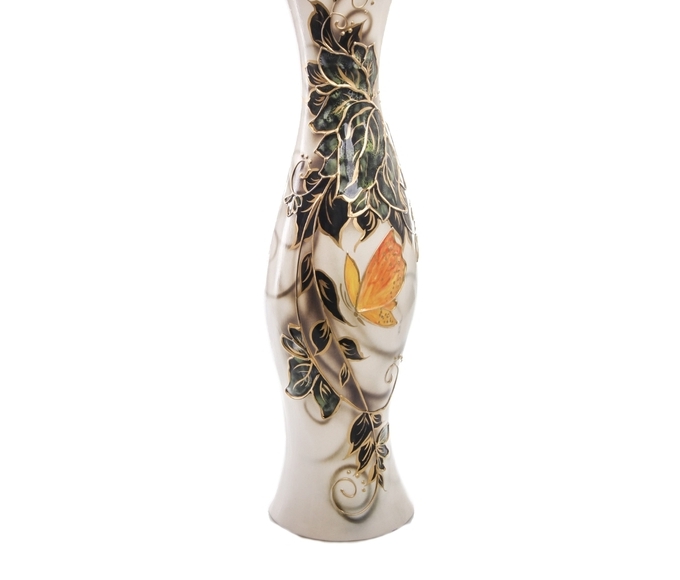 Керамика – прекрасный материал для изготовления ваз. Ваза напольная "Натали" роспись, зелёный лист, бабочка, задувка прочная и долговечная. Её очень сложно разбить или расколоть. Перед вами отличное сочетание «цена-качество».